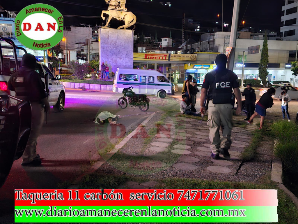 Chilpancingo. Gro. 11 de octubre de 2023.- Una mujer identificada con el nombre de Pragedis, vecina de la colonia Emiliano Zapata, ubicada al poniente de la capital, de aproximadamente 50 años de edad, murió luego de que fuera arrollada por un motociclista sobre la calle Toma de Oaxaca esquina con avenida Insurgentes, frente al monumento a Nicolás Bravo, en Chilpancingo.