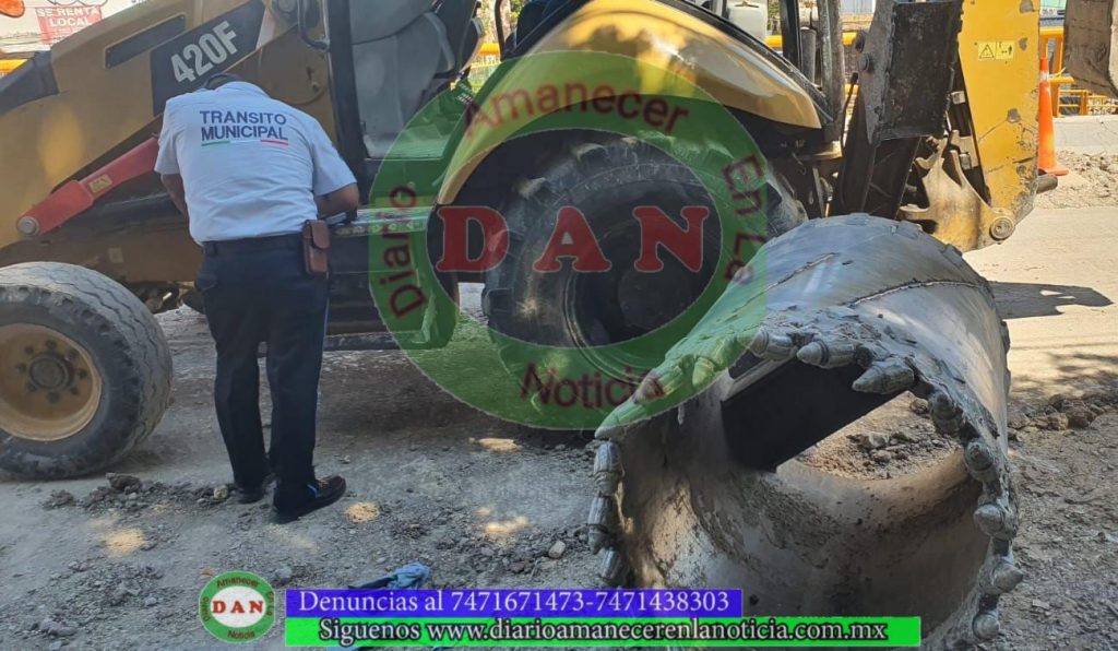 Chilpancingo, Gro., 26 de febrero de 2024.-Este lunes, alrededor de la 1:30 de la tarde, el operador de una retroexcavadora que realizaba trabajos en una obra en la que construye un puente vehícular en la colonia Obrera, no se percató de que uno de sus compañeros de trabajo estaba de espaldas en la zona y al echar de reversa la pesada unidad lo aplastó contra la barra de acero.