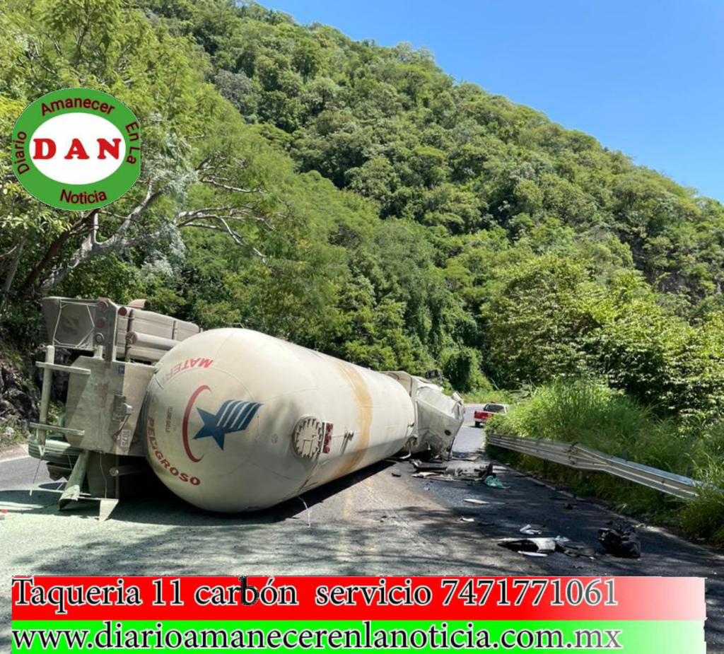 Iguala de la Independencia. Gro. 26 de septiembre de 2023.- El conductor de una pipa de gas LP murió prensado luego de volcar sobre la autopista Iguala-Cuernavaca, en el kilómetro 49, zona perteneciente al municipio de Iguala.