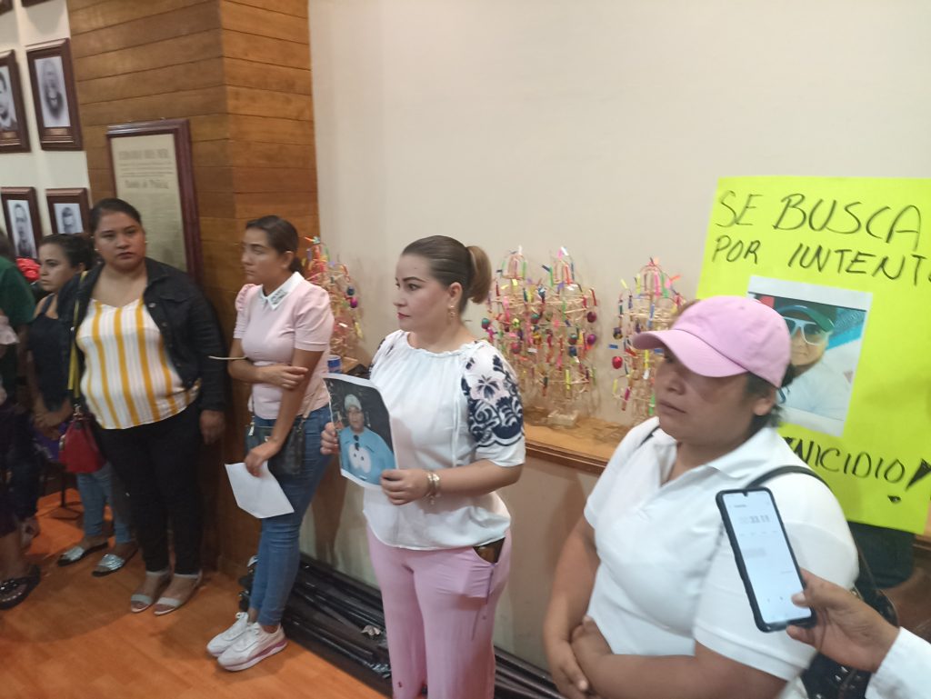 Las mujeres se presentaron con pancartas que decían “Se busca por intento de feminicidio” “Fiscalía queremos justicia”. Al notar la presencia de las mujeres la alcalde pidio que les dieran un micrófono para poder expresar su planteamiento.