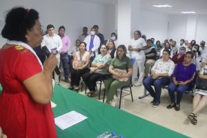 Tlapehuala, Gro., 4 de abril de 2023.- “Todos los días buscamos solucionar los problemas que se nos presentan”, afirmó la secretaria de Salud estatal, Aidé Ibarez Castro, durante la presentación de personal contratado para la atención médica en la región Tierra Caliente, con el objetivo de cumplir la instrucción del presidente Andrés Manuel López Obrador y de la gobernadora Evelyn Salgado Pineda, de garantizar el acceso a la salud para toda la población guerrerense.