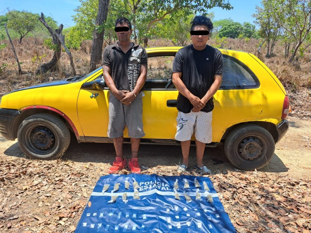 Detiene la Policía Estatal a dos personas con droga en el municipio de Marquelia