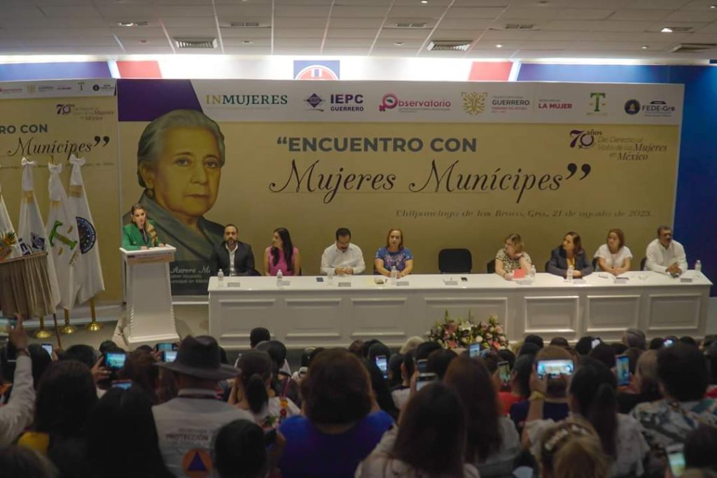Durante este evento, se reveló una placa en honor a la Sra. Aurora Mesa Andraca, pionera en ocupar una presidencia municipal en México. La Mtra. Evelyn Cecia Salgado Pineda, Gobernadora constitucional del estado de Guerrero, presidió el acto, acompañada por representantes de diversos órganos de gobierno.