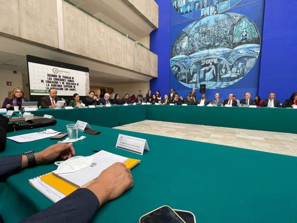 Chilpancingo, Gro., 05 de diciembre del 2022.- En una reunión de trabajo, el rector de la Universidad Autónoma de Guerrero, José Alfredo Romero Olea acompañado por la Tesorera General y presidenta de la AMEREIAF, Leticia Jiménez Zamora, entregaron en la Cámara de Diputados los Estados Financieros dictaminados, así como los avances académicos del Ejercicio Fiscal 2021, a las Comisiones Unidas de Vigilancia de la Auditoría Superior de la Federación (ASF) y de Educación de la Cámara de Diputados.