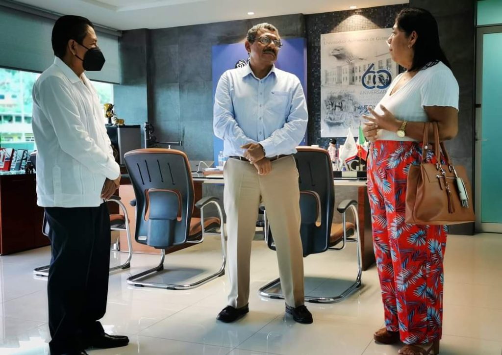 Chilpancingo, Gro., 03 de julio del 2023.-El rector de la Universidad Autónoma de Guerrero, José Alfredo Romero Olea recibió a la Secretaria General del Sindicato de Trabajadores Técnicos, Administrativos y de Intendencia (STTAISUAGro) Brenda Alicia Alcaraz González.