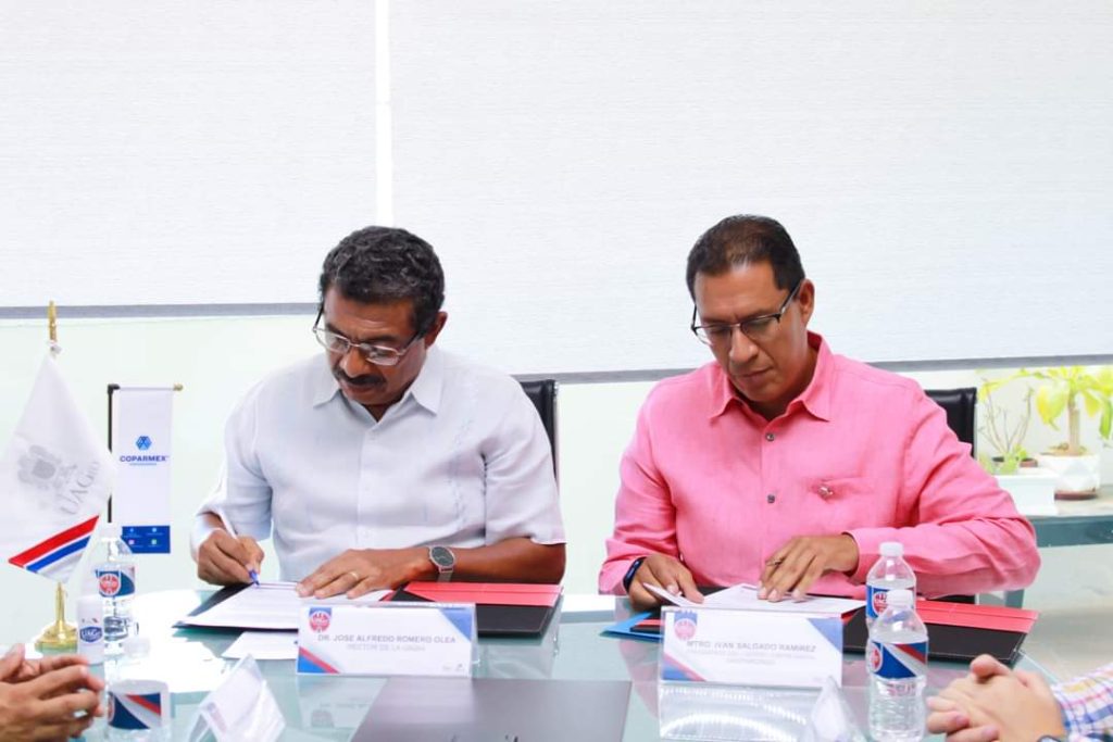Chilpancingo Gro., 23 de marzo del 2023.-Con el objetivo de contribuir al fortalecimiento de la vinculación con los diferentes sectores en particular con el privado, el rector de la Universidad Autónoma de Guerrero, Dr. José Alfredo Romero Olea, signó un convenio de colaboración con COPARMEX Chilpancingo, representado por su presidente el Mtro. Iván Salgado Benítez.