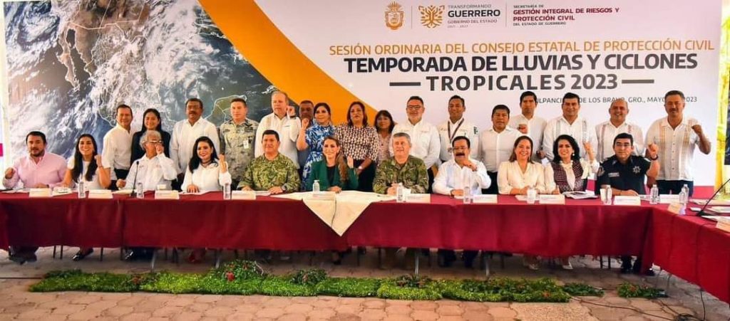 Chilpancingo, Gro., 09 de mayo del 2023.-El rector de la Universidad Autónoma de Guerrero, José Alfredo Romero Olea, participó en la Primera Sesión Ordinaria de Protección Civil Estatal, presidida por la Gobernadora, Evelyn Salgado Pineda, donde se plantearon las estrategias de prevención ante la proximidad de la temporada de lluvias y ciclones de este año.