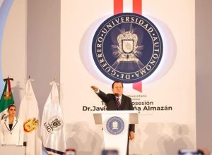 Javier Saldaña Almazán informó que en este nuevo rectorado “trabajaremos para que nadie se quede atrás, reimaginando la educación media superior y superior, revalorando el papel del profesorado, el estudiantado y la sociedad, en la búsqueda de coadyuvar a resolver los problemas del entorno y que abonen a la paz de nuestro estado”.