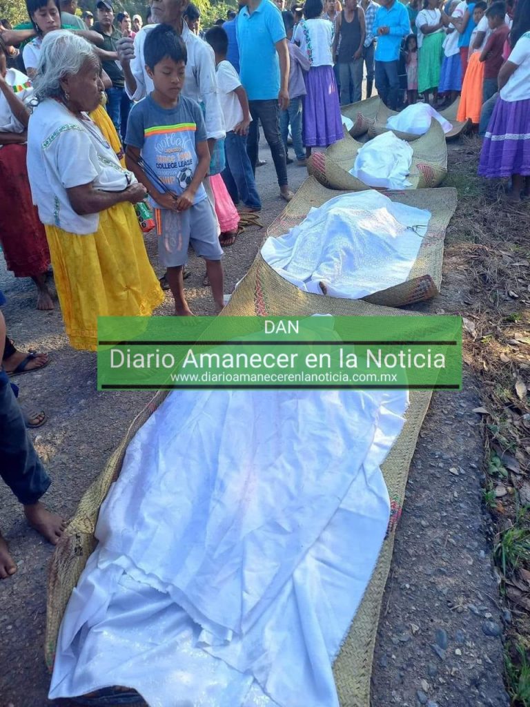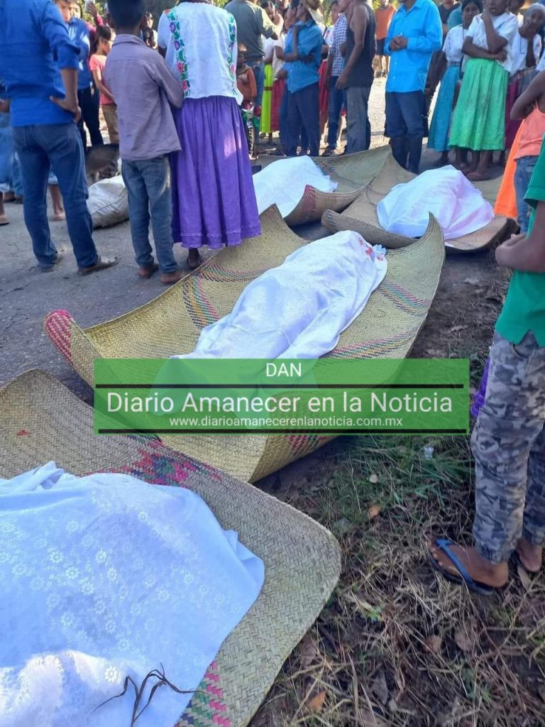 Pobladores y unidades de emergencia acudieron al lugar y rescataron los cuerpos de 5 personas que pusieron en petates y los taparon con una sábana blanca, de quienes hasta el momento se desconoce la identidad.