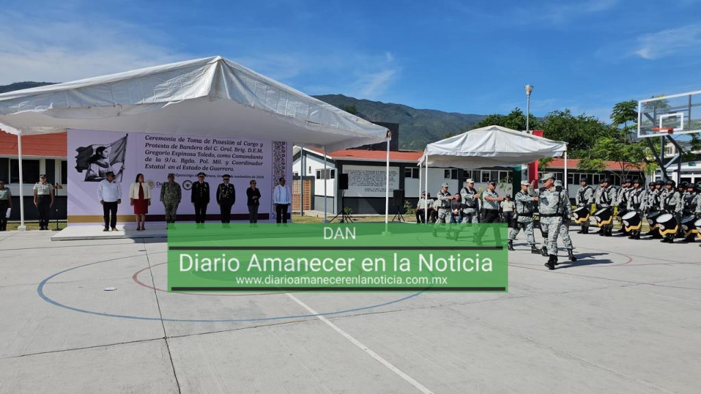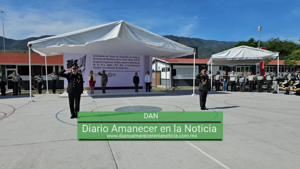 Chilpancingo, Gro., 14 de noviembre de 2024.- EL General de Brigada Diplomado de Estado Mayor, Gregorio Espinosa Toledo asumió el cargo de la 9/a. Brigada Policía Militar y Coordinador Estatal en Guerrero de la Guardia Nacional (GN).