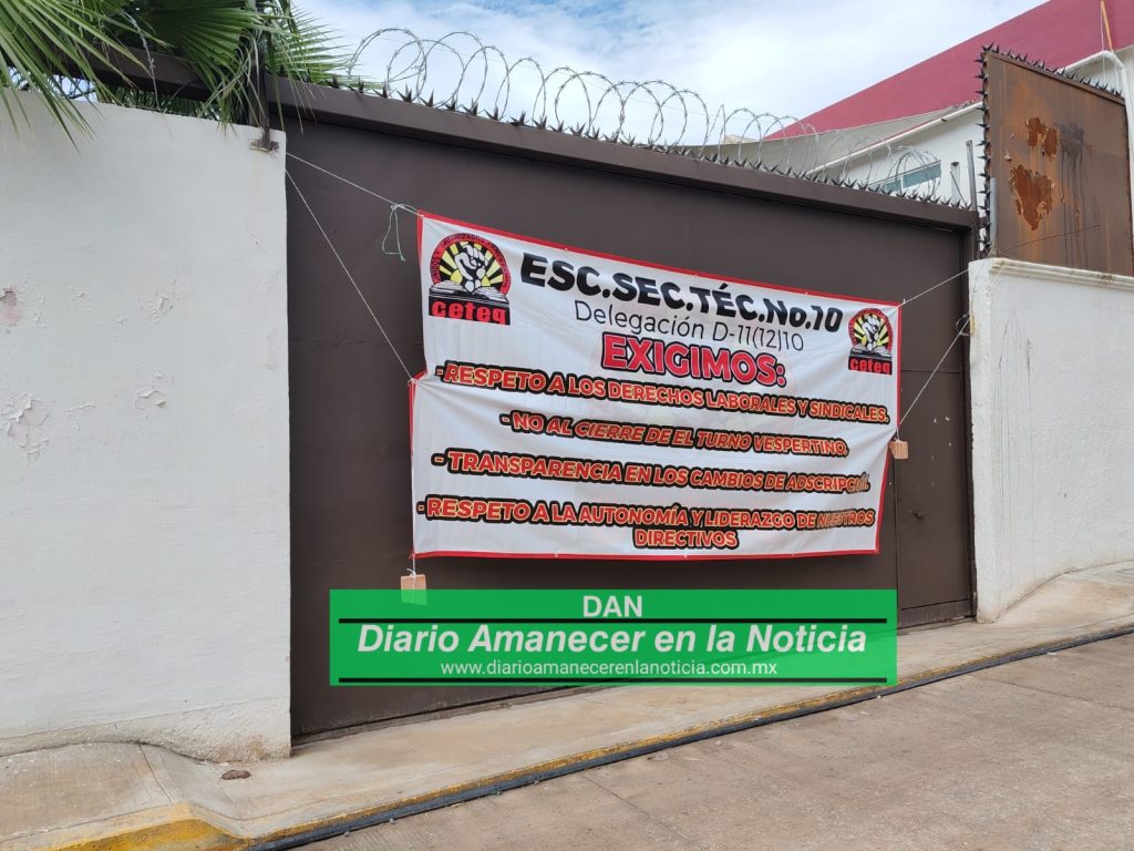 Dentro de sus demandas están el pago de horas de adeudos, otorgamiento de prórrogas, transparencia en los cambios de adscripción y exigieron no al cierre del turno vespertino de la escuela secundaria técnica 10 de Chilpancingo.