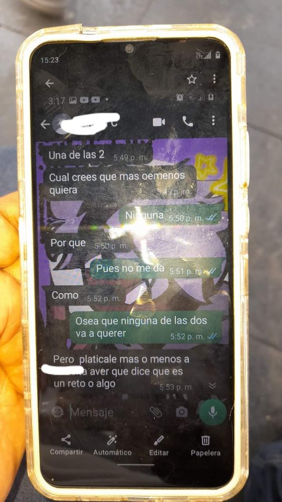 En entrevista, una de las madres de una de las infantes que fue acosada por el intendente -quien pidió el anonimato-, explicó que, el sujeto le mandaba mensajes vía WhatsApp a su hija de tan solo 11 años de edad, quien cursa el sexto grado, donde le pedía fotos desnuda y en ropa interior, además de que él le mandaba fotos de su pene.