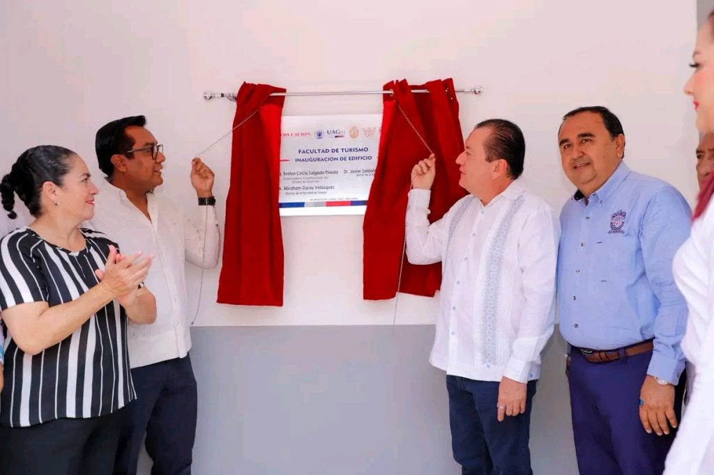Acapulco, Gro., 14 de abril de 2026.-Mediante una inversión superior a los 16 millones de pesos destinada a beneficiar a 608 estudiantes, el Rector de la Universidad Autónoma de Guerrero, Dr. Javier Saldaña Almazán, inauguró un nuevo edificio de tres niveles y complejos deportivos en la Facultad de Turismo de Acapulco. Estas obras, financiadas con el Fondo de Aportaciones Múltiples de Educación Superior y el Fondo de Aportaciones para el Fortalecimiento de las Entidades Federativas 2025, buscan modernizar los espacios académicos y fortalecer la formación integral de la juventud guerrerense. Esta iniciativa cuenta con el respaldo de la Presidenta de México, Dra. Claudia Sheinbaum Pardo, y de la Gobernadora de Guerrero, Mtra. Evelyn Salgado Pineda.