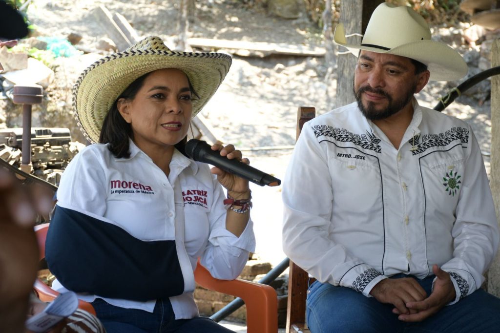 Mochitlán, Guerrero, 2 de abril de 2024.-La candidata de Morena al Senado, Beatriz Mojica Morga, al reunirse con productores de Mezcal en Mochitlán, donde destacó el potencial de la agroindustria del mezcal para impulsar la economía del Estado.