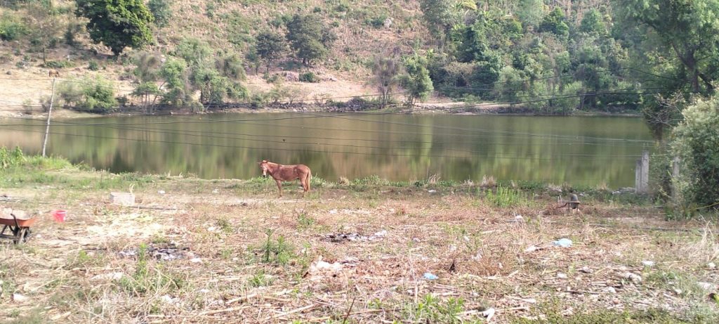 Al caminar con Alexis por su vivienda se observa un pequeño lago, muchos guajolotes, pollos, gallinas y caninos.