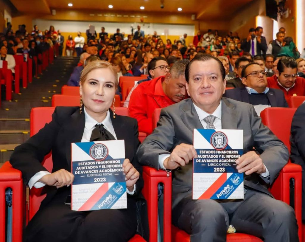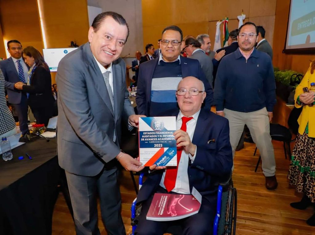 México, Gro., 29 de noviembre de 2024.-El rector de la Universidad Autónoma de Guerrero, Javier Saldaña Almazán acompañado por la Tesorera de la UAGro y Presidenta de la AMEREIAF, Leticia Jiménez Zamora, entregó en la Ciudad de México al Auditor Superior de la Federación, David Rogelio Colmenares Páramo, los Estados Financieros Auditables así como el Informe de Avances Académicos de la UAGro correspondientes al Ejercicio Fiscal 2023.
