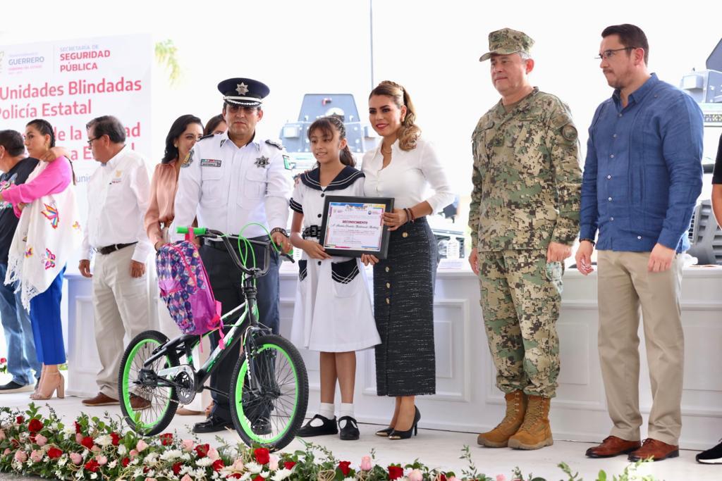 Durante el evento la gobernadora Evelyn Salgado junto con el senador Félix Salgado Macedonio y el secretario de Seguridad Pública, Evelio Méndez Gómez, realizaron la entrega de premios a las niñas y niños ganadores del Concurso Estatal de Dibujo Infantil 2023 “Amiga y Amigo Policía” que consta de un kit escolar, bicicleta y reconocimiento a los primeros lugares de las tres categorías.
