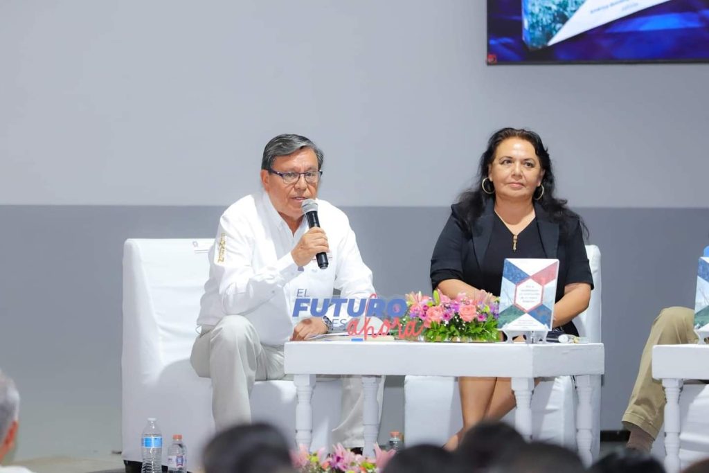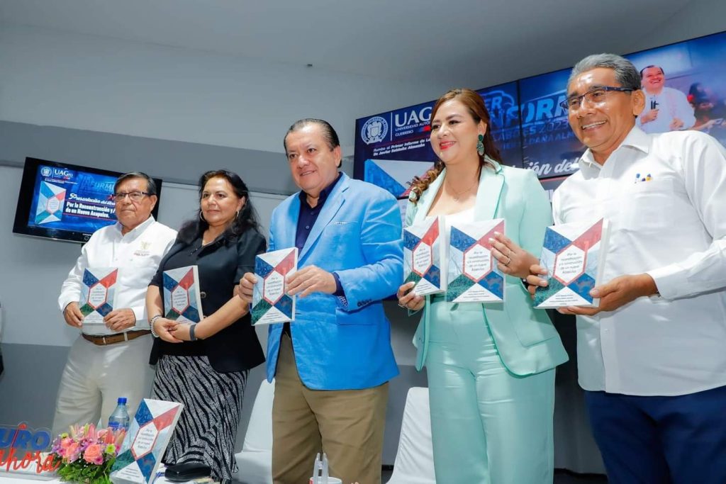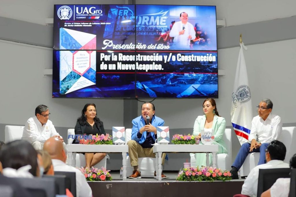 Chilpancingo, Gro., 20 de septiembre de 2024.-En el marco de su Primer Informe de Labores, el rector de la Universidad Autónoma de Guerrero, Javier Saldaña Almazán presentó en la Facultad de Medicina el libro “Por la Reconstrucción y / o Construcción de un Nuevo Acapulco” del cual es coautor y en el que se plantean nuevas políticas públicas para prevenir y mitigar los daños causados por desastres naturales a los guerrerenses, asi como una cultura de paz y conservación ambiental.