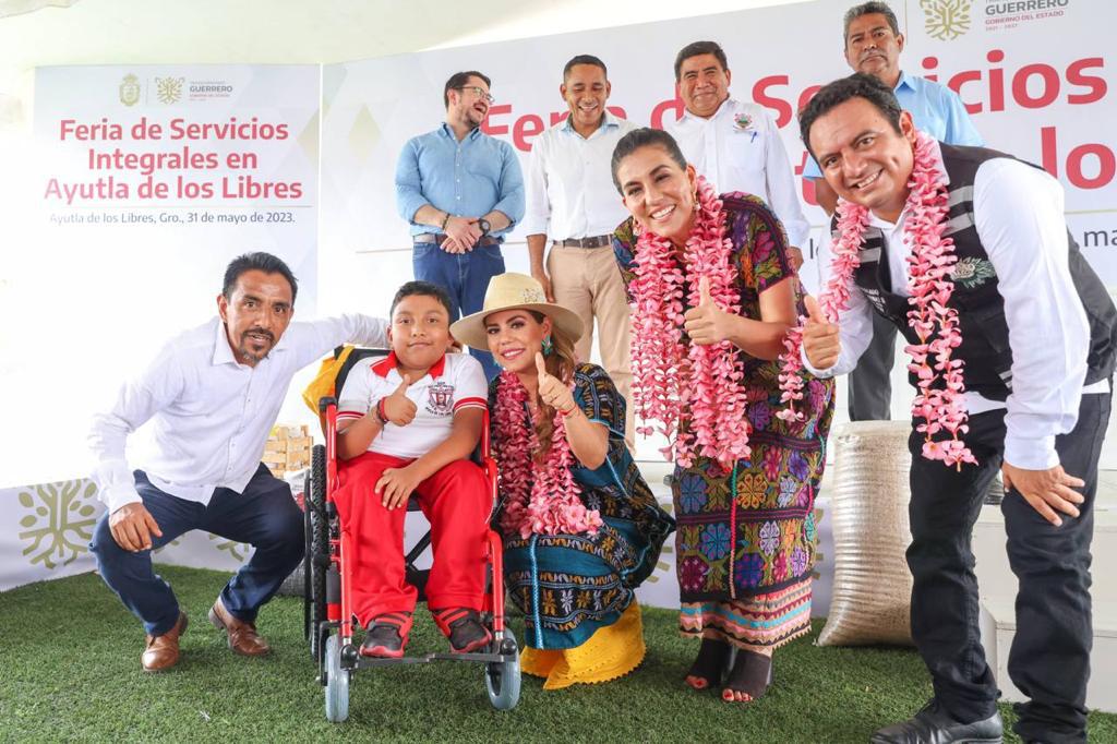 “Aquí en Ayutla, esta tierra hermosa y tan importante refrendamos nuestro compromiso de pasar a la historia como un gobierno de cambio, de bienestar, de justicia, de territorio. Porque ustedes han visto que andamos en todos lados, no estamos esperando a que vayan y nos toquen la puerta; nosotros salimos, estamos en las comunidades y en todas las regiones, para que ninguna región se quede atrás. Tenemos que irnos apoyando unos a otros”, dijo. En su visita, Salgado Pineda detalló que, en materia de Obra Pública, se tiene programada una inversión de casi 15 millones de pesos para pavimentaciones, canchas techadas, puentes peatonales y la plaza de toros en la localidad de La Unión. En infraestructura educativa, se realizará una ejecución de recursos por el orden de casi 6 millones de pesos. En tanto que en infraestructura carretera, habrá una inversión de casi 10.5 millones de pesos, mientras que en materia de Bienestar, se invertirán más de 1.7 millones de pesos para el mejoramiento de vivienda en la colonia Piedra del Zopilote, rehabilitación de escuelas, programa de Pensión Guerrero, Programa de Alimentación para el Bienestar de Niñas y Niños; también se trabajará en el tema de agua potable, entre otros beneficios. Se entregaron 95 tarjetas del programa La Escuela es Nuestra, con apoyos que van de los 200 mil a los 600 mil, y que servirán para mejorar la infraestructura, el equipamiento o prestar el servicio de alimentación o de horario extendido en planteles escolares. De igual manera informó que hay un gran avance en la construcción del nuevo hospital de Ayutla; en este tema anunció que cumpliendo una demanda de la población, se hará entrega de una ambulancia. En su participación, la presidenta del DIF Guerrero, Liz Adriana Salgado Pineda informó que en el municipio de Ayutla se apoya mensualmente a 2 mil 869 niñas y niños con desayunos calientes; 2 mil 393 niños con despensa individual y 242 beneficiados con desayunos fríos, con una inversión que suma los casi 10 millones de pesos. En este acto se hizo entrega de Tarjetas del Igatipam, rectificación de actas de nacimiento, uniformes escolares, constancias de cursos con validez oficial y curricular del Icategro y aparatos funcionales como lentes, sillas de ruedas, bastones, entre otros. A nombre de los beneficiarios, el delegado de la colonia Cruz Alta, Luciano Martínez Leobardo, agradeció a la gobernadora todo su apoyo para la comunidad. “La gran mujer que lucha incansablemente, maestra Evelyn Salgado Pineda, muchísimas gracias por su visita”, dijo. A esta feria de servicios asistieron funcionarios y representantes del DIF Guerrero, Secretaría de Salud, Secretaría de Desarrollo y Bienestar Social, Secretaría de Fomento y Desarrollo Económico, Secretaría de Educación Guerrero, Secretaría de Agricultura, Ganadería, Pesca y Desarrollo Rural, Secretaría de Seguridad Pública, Delegación de Programas para el Bienestar Guerrero, Coordinación Técnica del Sistema Estatal del Registro Civil, Secretaría de Asuntos Indígenas y Comunidades Afromexicanas, Instituto de Capacitación para el Trabajo del Estado de Guerrero (Icategro), Comisión de Infraestructura Carretera y Aeroportuaria del Estado de Guerrero, Instituto Guerrerense de la Infraestructura Física Educativa, Comisión de Agua Potable, Alcantarillado y Saneamiento del Estado de Guerrero, Secretaría de Desarrollo Urbano, Obras Públicas y Ordenamiento Territorial y el Instituto Guerrerense para la Atención Integral de las Personas Adultos Mayores. Asistieron el diputado local, Ociel García Trujillo; el coordinador del Concejo Comunitario de Ayutla de los Libres, Ysabel de los Santos Morales; el secretario general de Gobierno, Ludwig Marcial Reynoso Núñez; el delegado en Guerrero de los programas para el Bienestar, Iván Hernández Díaz, entre otros.