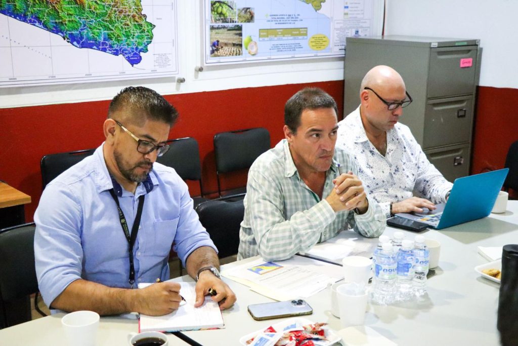 El gerente del Comité Estatal para el Fomento y Protección Pecuaria de Guerrero, Bulmaro Antonio Roque Jiménez; el director general de Agricultura, Sanidad Vegetal, Contingencias Climatológicas, Pável Ernesto Damián Díaz y el técnico de SENASICA, Gerardo Celis Salgado.