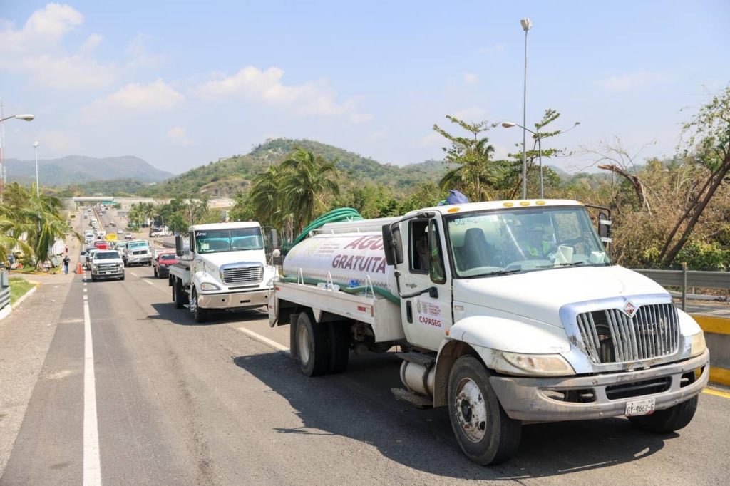 Acapulco, Gro., 29 de octubre del 2023. – Para reforzar los trabajos de atención a la población damnificada por el Huracán “Otis”, la gobernadora Evelyn Salgado Pineda reforzó el Plan Emergente de abasto de agua en pipas que se suman al trabajo que realizan las dependencias del gobierno estatal para restablecer los servicios de primera necesidad en Acapulco.