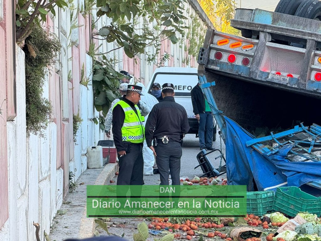 Vuelca torton cargado de frutas y verduras en #Zumpango del Río; muere el chófer